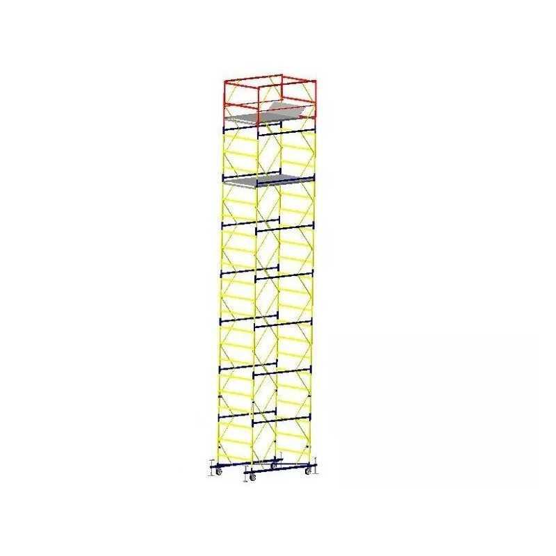 Вишка-тура VIRASTAR «ОПТИМА» 7+1, настил 1,2x2,0 м. Висота вишки 9.9 м. Використовується в будівельних роботах, оздоблювальних, монтажних або інших, де потрібно підйом на висоту.